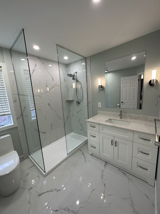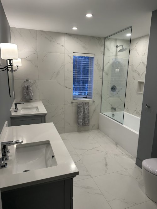 Whether it’s a custom marble entryway, a full-scale kitchen renovation, or a seamless slab tile shower with mitered edges — our portfolio showcases the detail and care behind every installation.